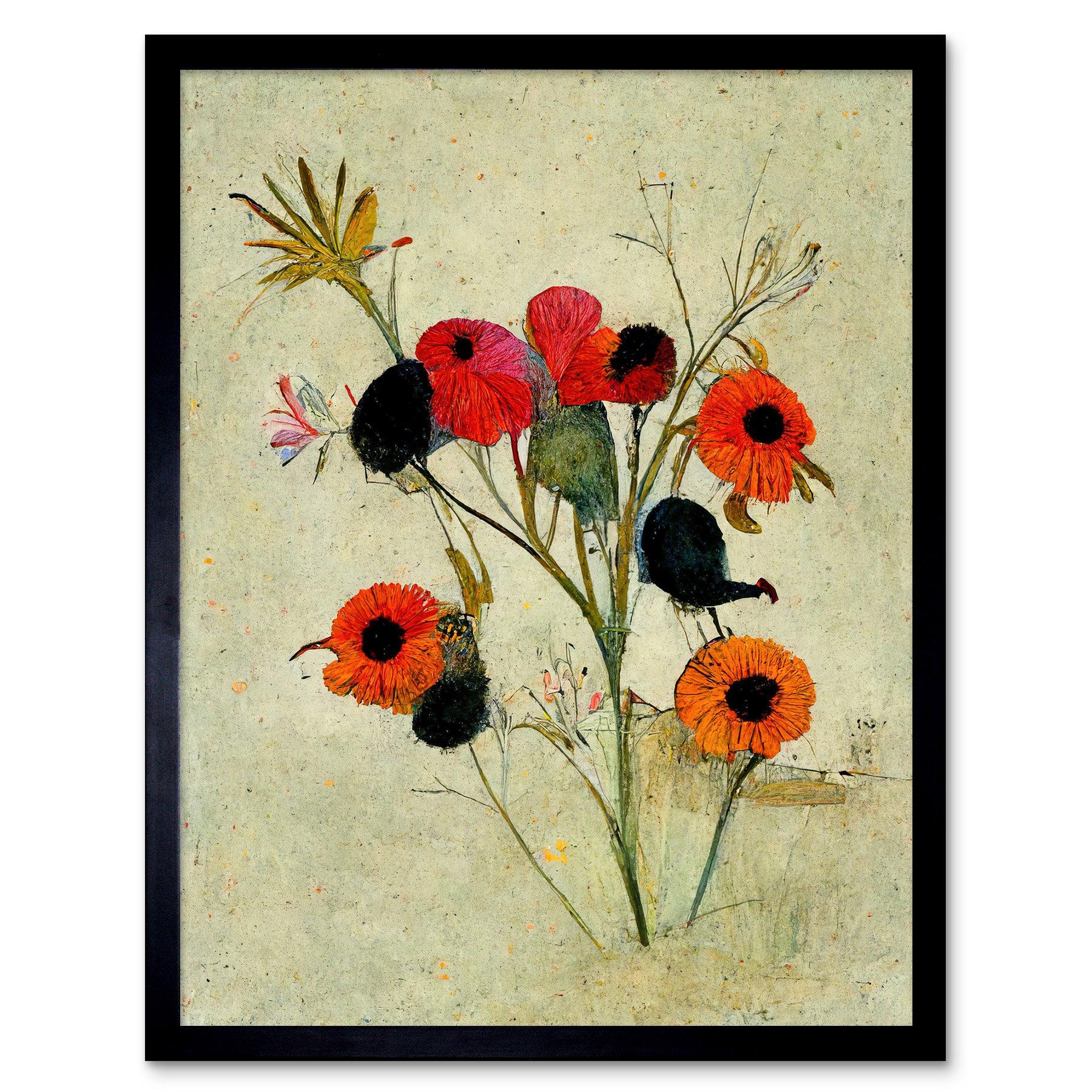 Summer Flowers Floral Bouquet Bold Abstract Boho Illustration Art Print Framed Poster Wall Decor 12x16 inch