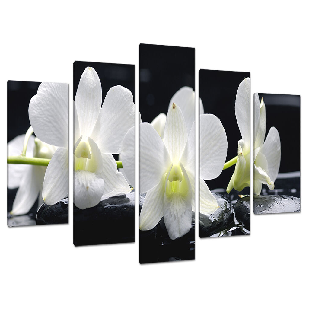 Set of 5 Panel Black White Floral Canvas Wall Art Flowers Picture 5051