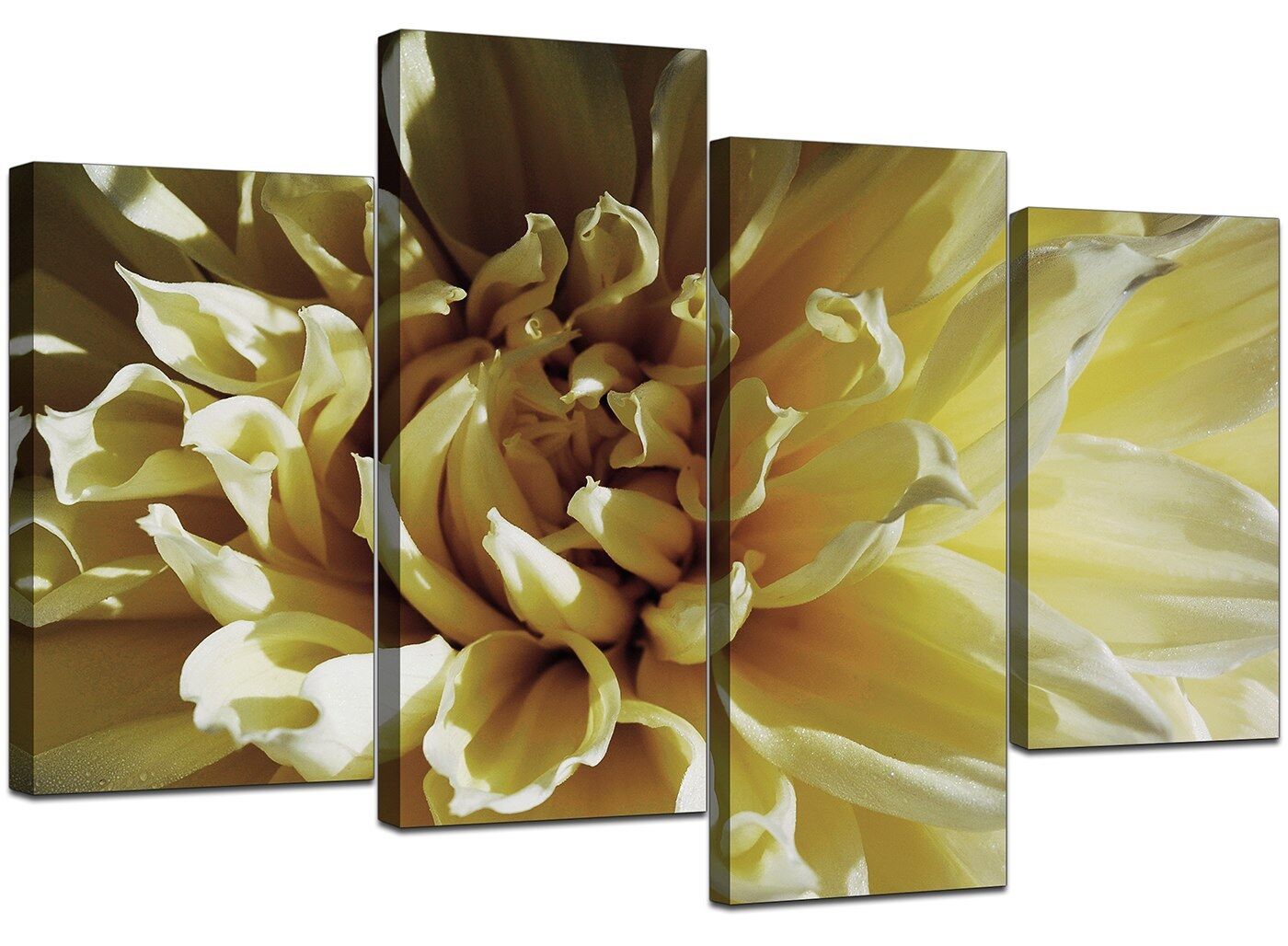 Large Cream Yellow Floral Canvas Flowers Wall Art XL Pictures Set 4104