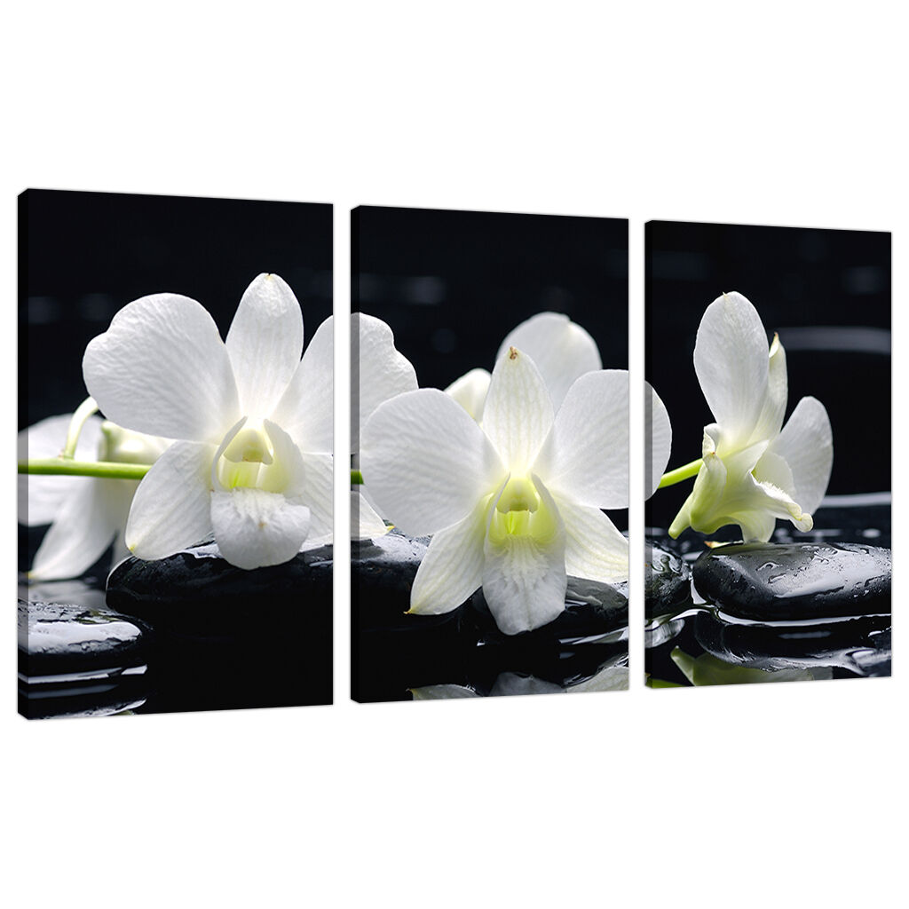 Set of 3 Panel Black White Floral Canvas Wall Art Flowers Picture 3051