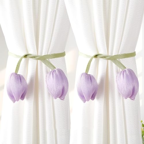 Curtain Rope Tiebacks,Tulip Flower Curtain Holdbacks,for Home Drapes(Purple)