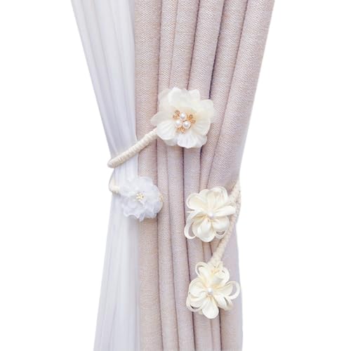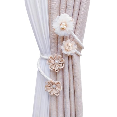 Flower Curtain Buckles for Home, Bedroom and Living Room, Decorative Curtain Holders for Drapes Drapery Window(Beige)