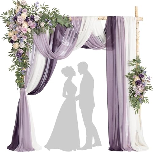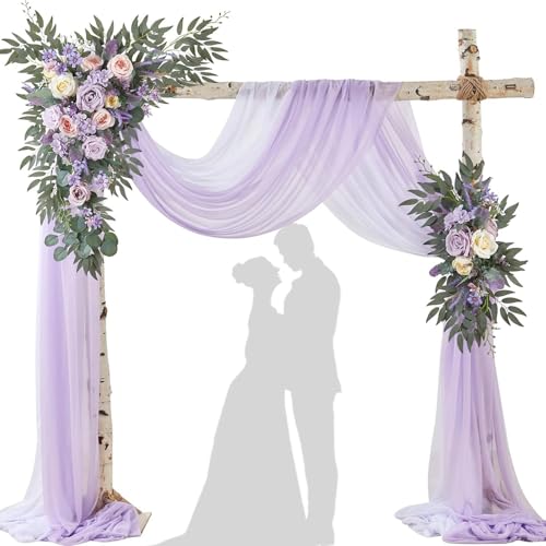 CCXJMLS Wedding Arch Flowers Kit, Artificial Flower Arch Decor, Wedding Decor with Drapes, Be Suited to Banquet, Party, Wedding Decor Ceremony and Background Decoration(Purple)