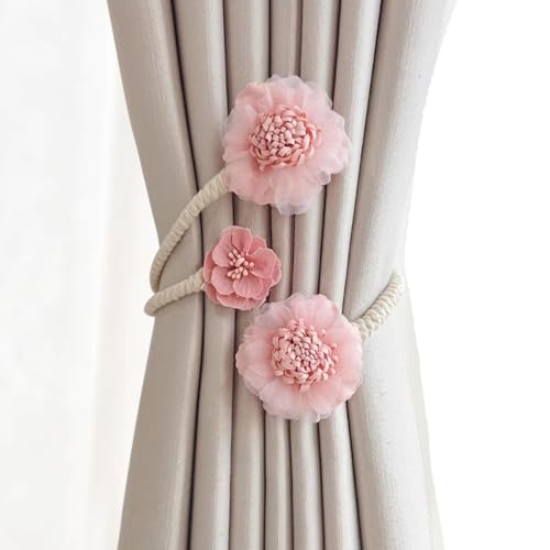 Flower Curtain Buckles for Home, Bedroom and Living Room, Decorative Curtain Holders for Drapes Drapery Window(Pink)