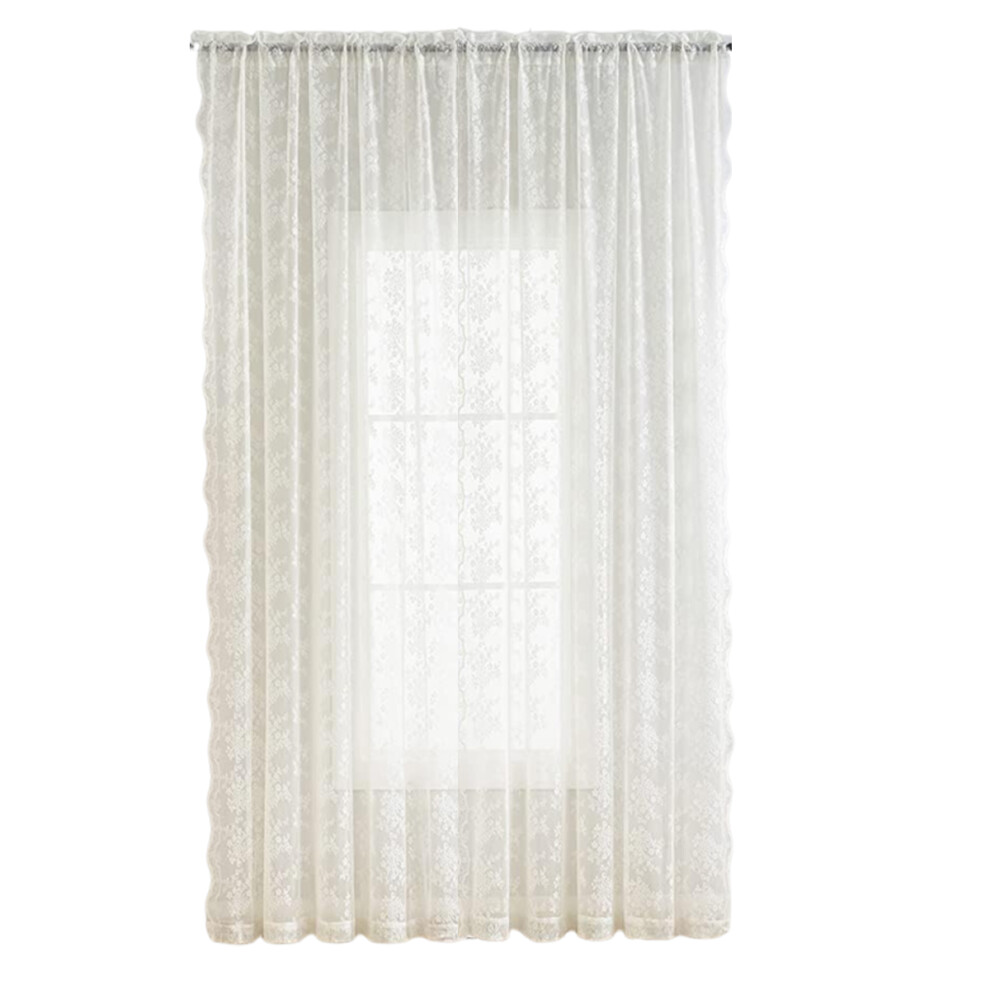 BDXZJ Net Curtains for Windows Vintage Flower Design Lace Sheer Curtains for Living Room Cottage Scalloped Voile Curtain for Kitchen Bedroom Living Room, Rod Pocket Drapes, 1 Pane W130*H180cm