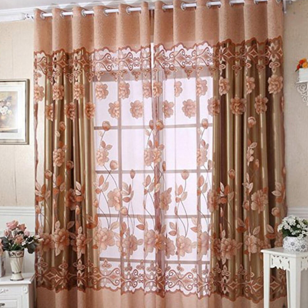 100 X200cm Printed Translucent Tulle Curtain Flower Window Drapes