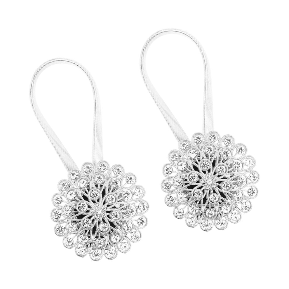 Decorative Crystal Flower Curtain Holders Drapes Tieback-silver