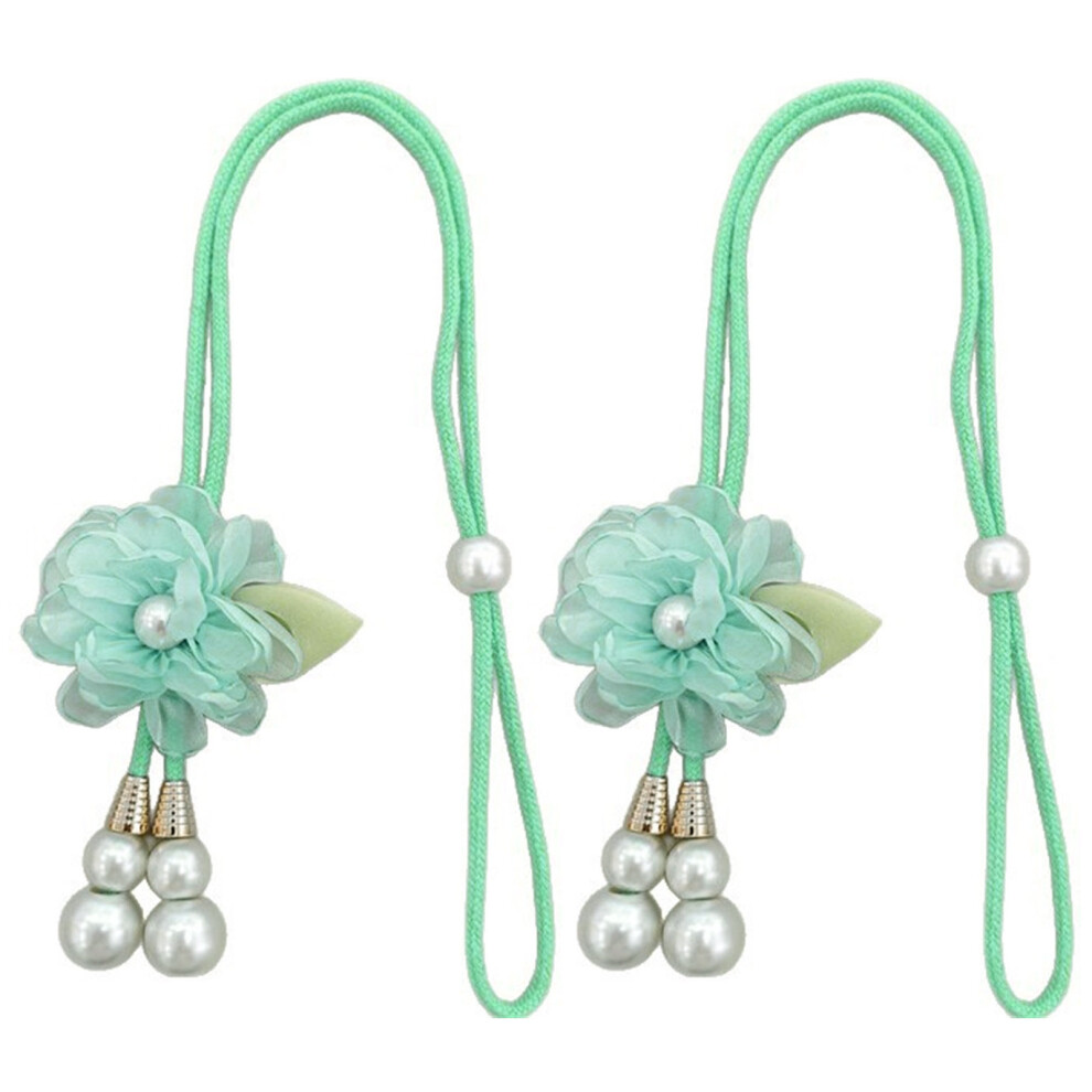 Decorative Pearls Flower Tiebacks For Drapes Set Of 2-Green