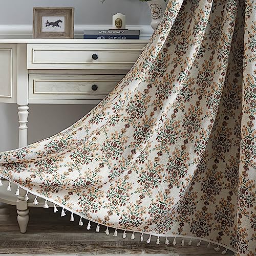 ENJOYBRIDAL Floral Curtains 96 Inch Length 2 Panels Vintage Flower Patterned Drapes Boho Semi Sheer Tassel Rustic Country Rod Pocket Botanical Farmhouse Window Curtain Panels for Bedroom Living Room