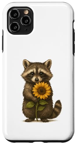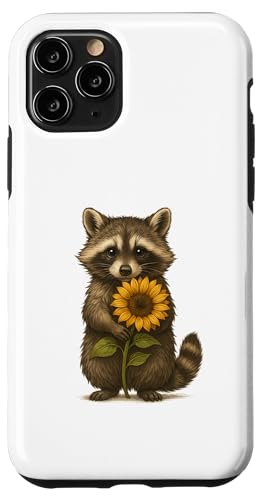 Raccoon Holding Sunflower Cute Flower Valentines Mothers Day Case for iPhone 11 Pro