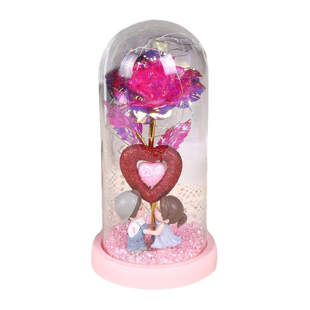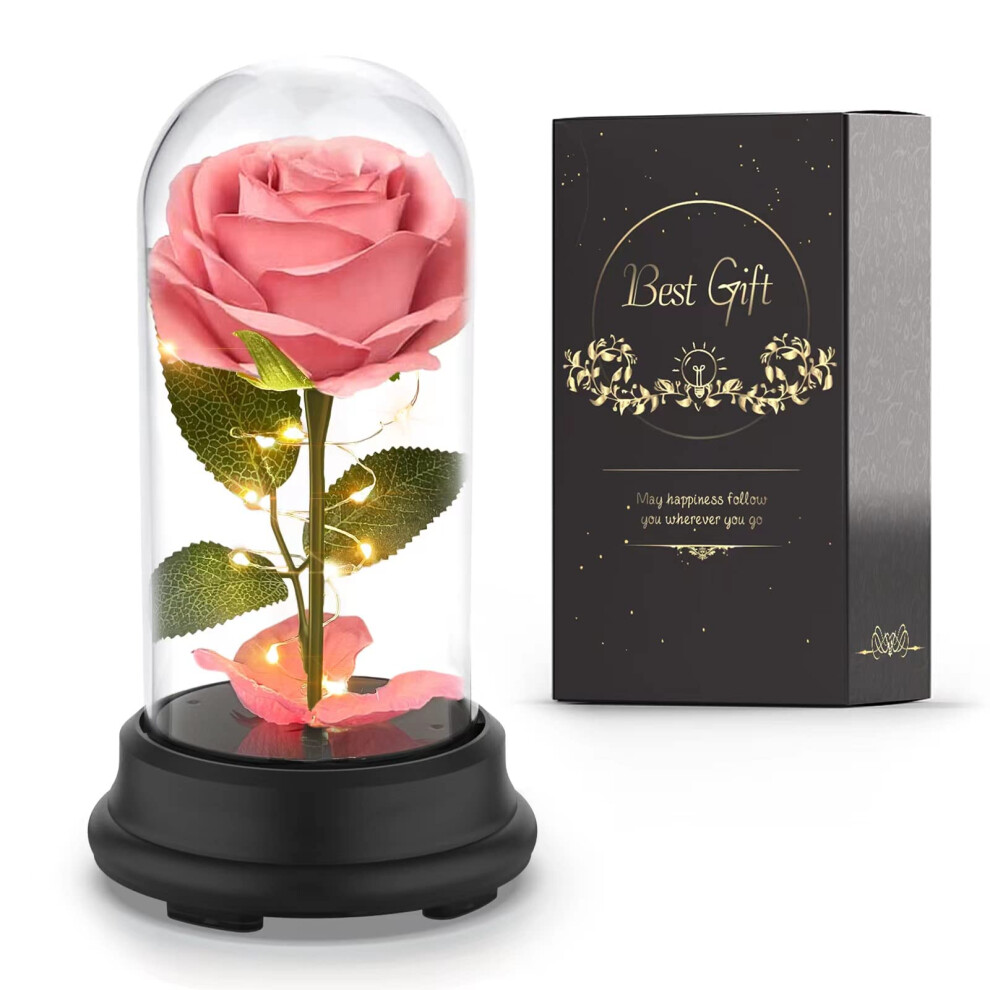 Rose Flower Gifts for Women, Valentines Day Gifts for Her, Birthday Gifts for Women, Light Up Artificial Flowers Preserved Rose in Glass Dome(Pink)