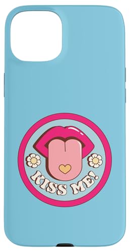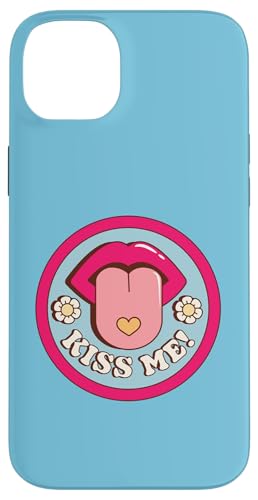 Kiss Me Flower Tongue Out Funny Valentines Day Womens Men Case for iPhone 15 Plus