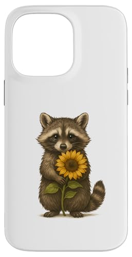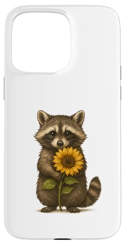 Raccoon Holding Sunflower Cute Flower Valentines Mothers Day Case for iPhone 15 Pro Max