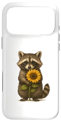 Raccoon Holding Sunflower Cute Flower Valentines Mothers Day Case for iPhone 17 Pro