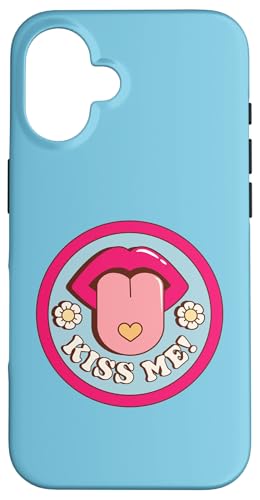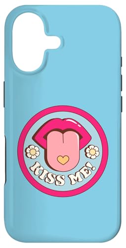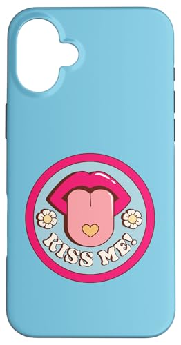 Kiss Me Flower Tongue Out Funny Valentines Day Womens Men Case for iPhone 16 Plus