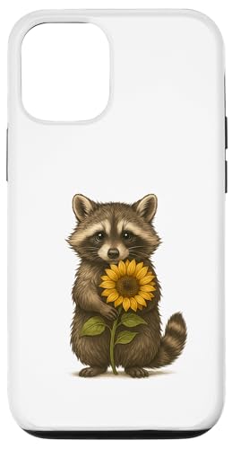 Raccoon Holding Sunflower Cute Flower Valentines Mothers Day Case for iPhone 12/12 Pro