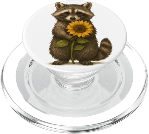 Raccoon Holding Sunflower Cute Flower Valentines Mothers Day PopSockets PopGrip for MagSafe