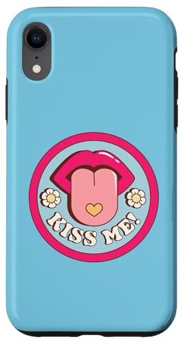 Kiss Me Flower Tongue Out Funny Valentines Day Womens Men Case for iPhone XR