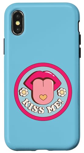 Kiss Me Flower Tongue Out Funny Valentines Day Womens Men Case for iPhone XS Max
