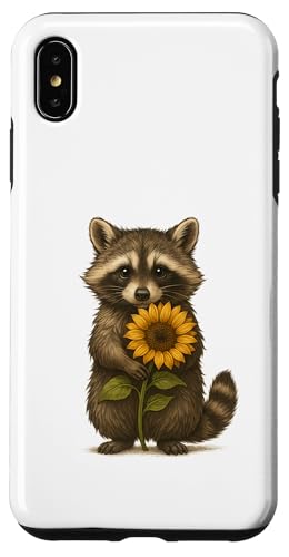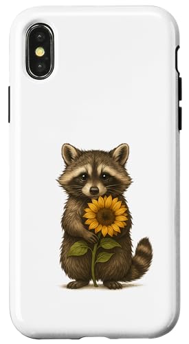 Raccoon Holding Sunflower Cute Flower Valentines Mothers Day Case for iPhone XS Max