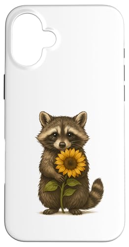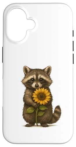 Raccoon Holding Sunflower Cute Flower Valentines Mothers Day Case for iPhone 16 Plus