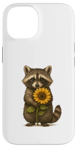Raccoon Holding Sunflower Cute Flower Valentines Mothers Day Case for iPhone 14