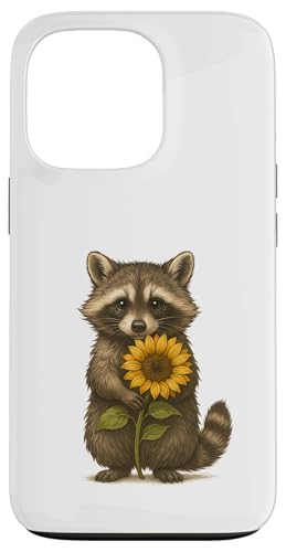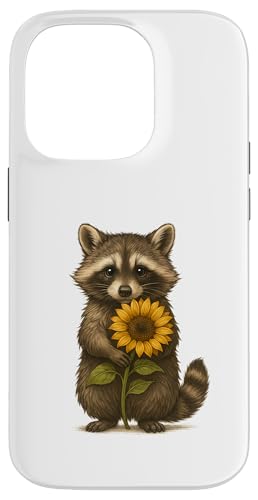 Raccoon Holding Sunflower Cute Flower Valentines Mothers Day Case for iPhone 13 Pro