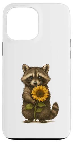 Raccoon Holding Sunflower Cute Flower Valentines Mothers Day Case for iPhone 13 Pro Max