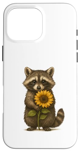 Raccoon Holding Sunflower Cute Flower Valentines Mothers Day Case for iPhone 17 Pro Max