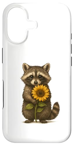 Raccoon Holding Sunflower Cute Flower Valentines Mothers Day Case for iPhone 16