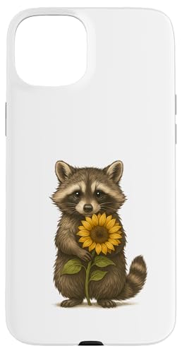 Raccoon Holding Sunflower Cute Flower Valentines Mothers Day Case for iPhone 15 Plus