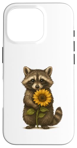 Raccoon Holding Sunflower Cute Flower Valentines Mothers Day Case for iPhone 16 Pro