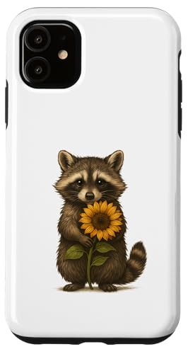 Raccoon Holding Sunflower Cute Flower Valentines Mothers Day Case for iPhone 11