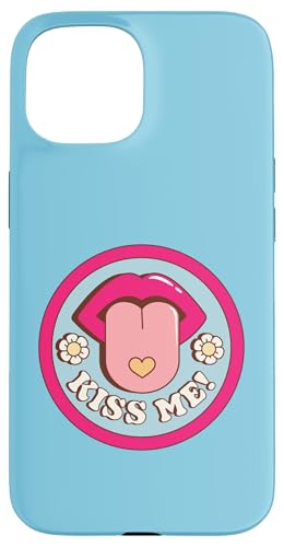 Kiss Me Flower Tongue Out Funny Valentines Day Womens Men Case for iPhone 15