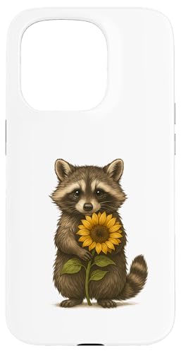 Raccoon Holding Sunflower Cute Flower Valentines Mothers Day Case for iPhone 15 Pro