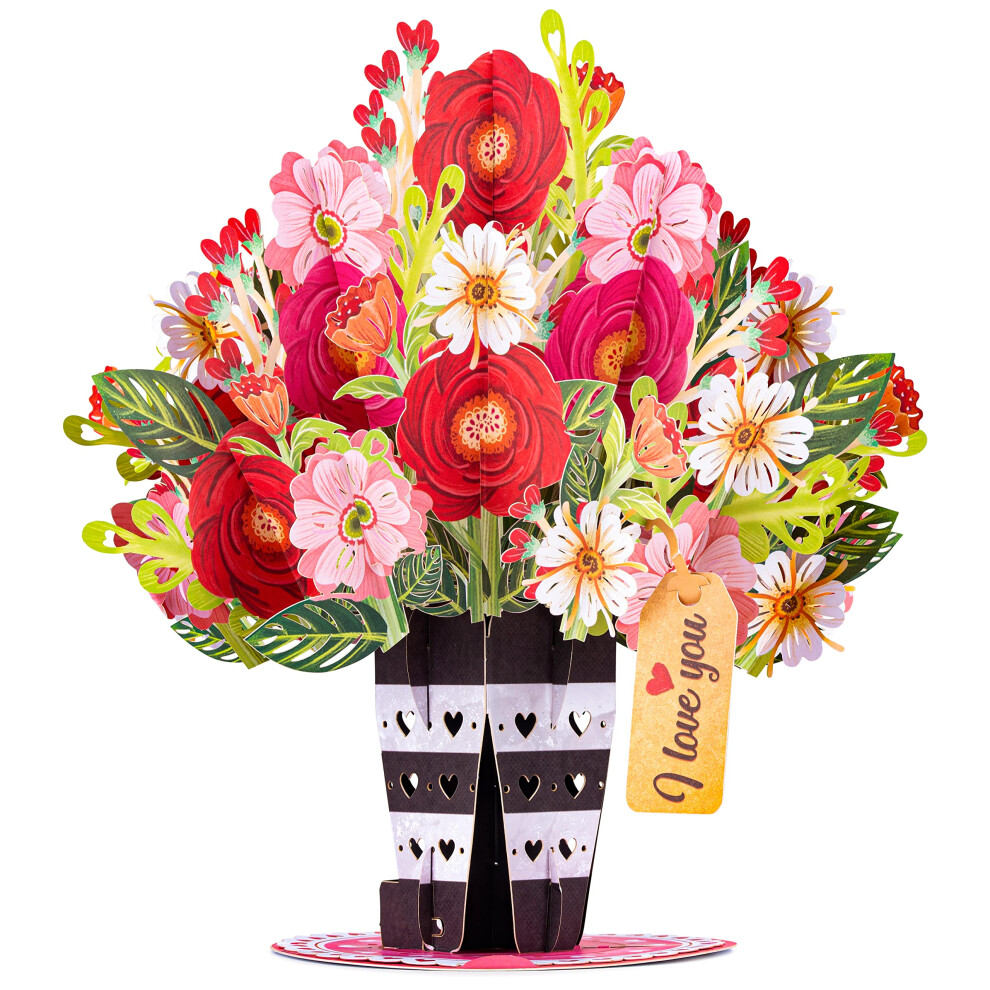Paper Love HugePop 3D Love You Bouquet Pop Up Card with Detachable Paper Flower Bouquet Gift for Valentines Day Birthday All Occasion - Jumbo 10""