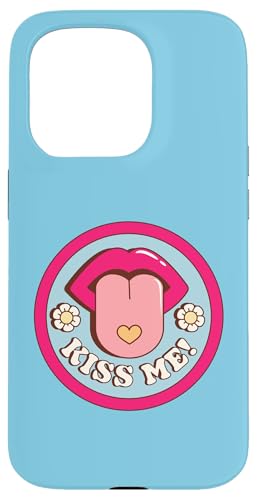 Kiss Me Flower Tongue Out Funny Valentines Day Womens Men Case for iPhone 15 Pro