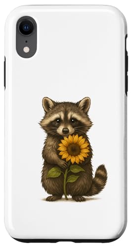Raccoon Holding Sunflower Cute Flower Valentines Mothers Day Case for iPhone XR