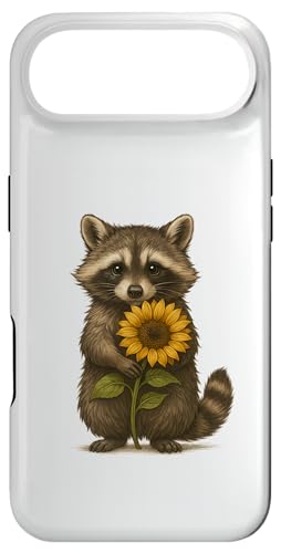 Raccoon Holding Sunflower Cute Flower Valentines Mothers Day Case for iPhone 17