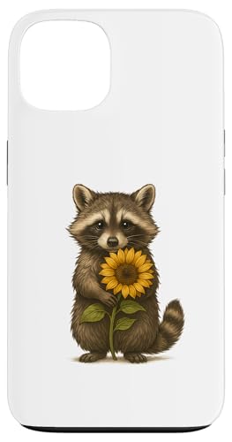 Raccoon Holding Sunflower Cute Flower Valentines Mothers Day Case for iPhone 13