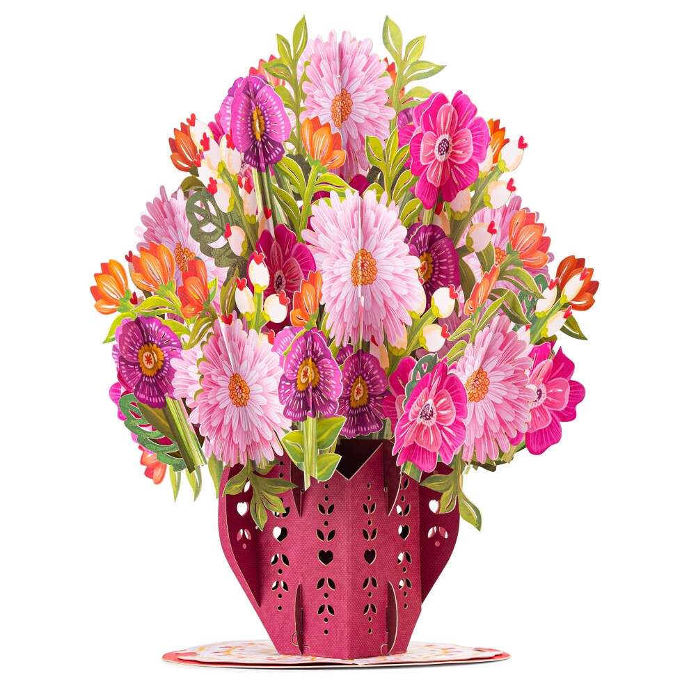 Paper Love HugePop 3D Lovely Flower Vase Pop Up Card with Detachable Paper Flower Bouquet For Valentines Day Gift Birthday All Occasions - Jumbo 1