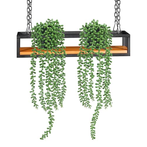 DMCHENGMA Ceiling Shelf Floating Flower Pot Shelving|Wood and Metal Iron Storage Display Rack Ceiling Hanging Flower Racks Plant Decor Stand for Bars,Living Room/Restaurants(60x25x15cm)