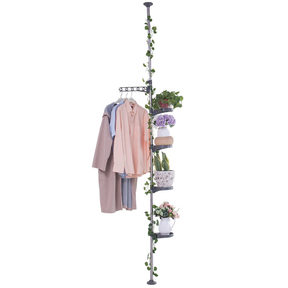 BAOYOUNI 5-Layer Tension Pole Plant Stands Indoor Metal Flower Display Rack Space Saver Floral Pot Hanging Shelf Grey