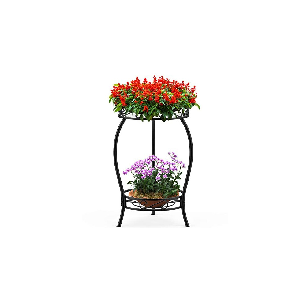 Plant Stand Indoor Outdoor 2 Tier 24"""" Tall Black Flower Pot Plant Stands Heavy Duty Metal Plants Shelf Rustproof Iron Multiple Plant Round Su