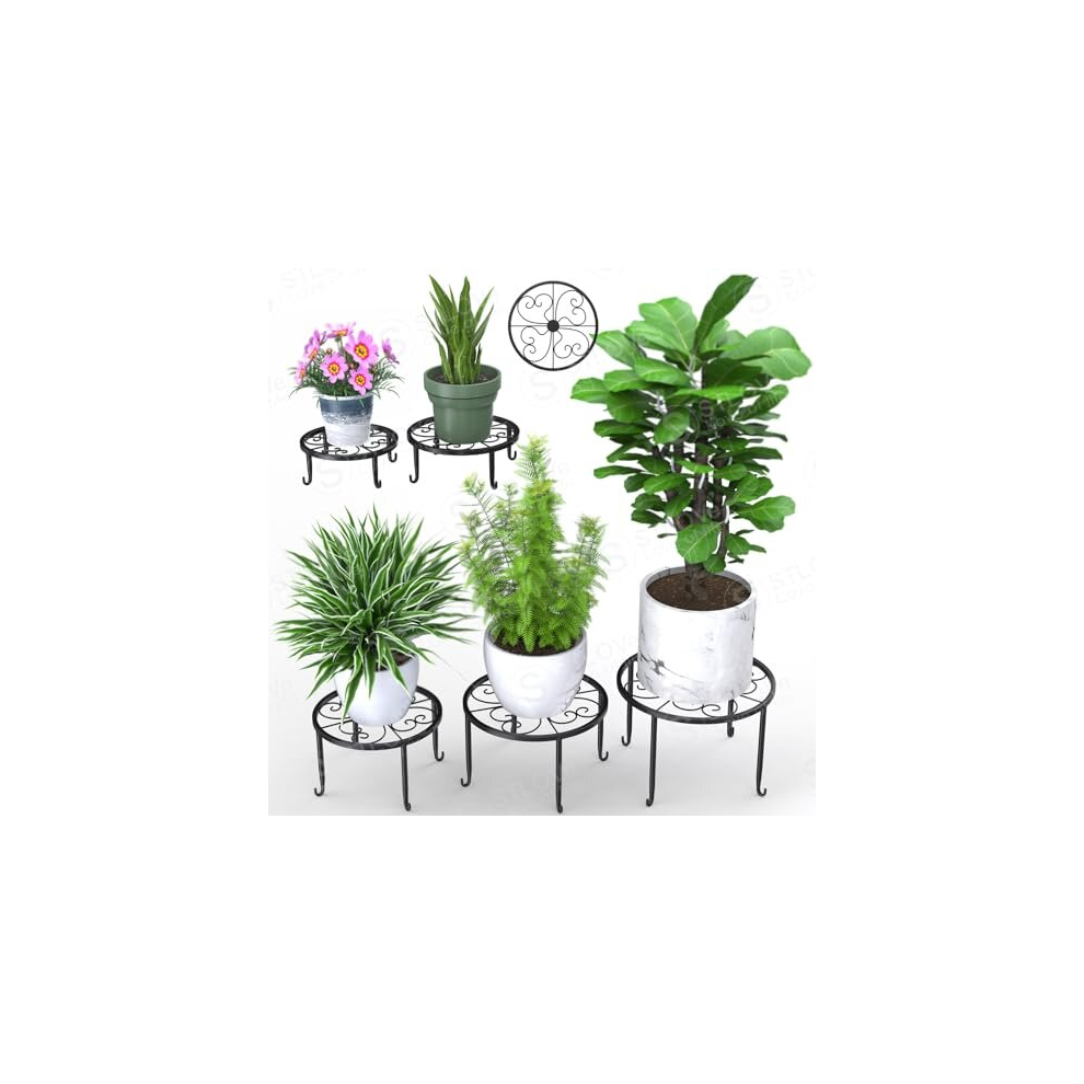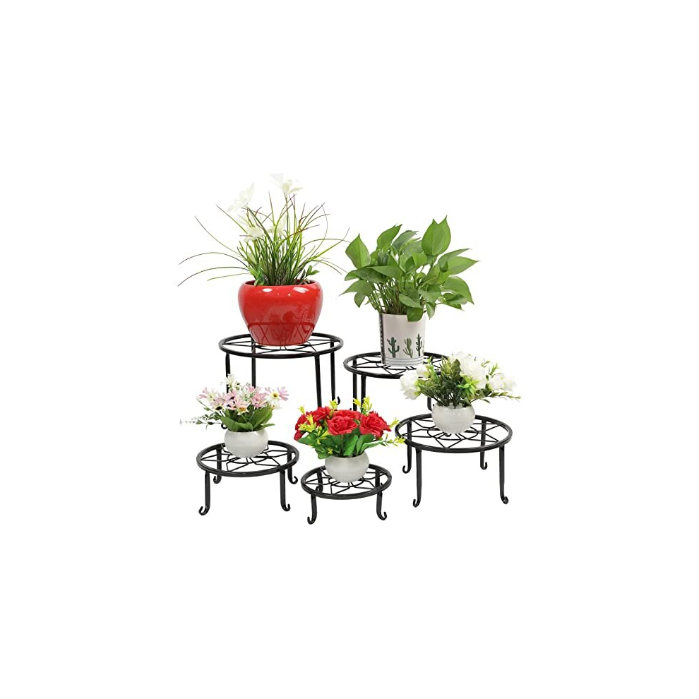 CADANI 5-Pack Metal Plant Stands for Outdoor Indoor Anti-Rust Iron Flower Pot Stand Heavy Duty Plant Pot Shelf for Multiple Plant Decoration R