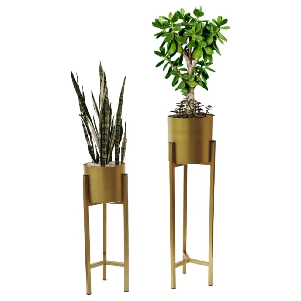 Trendi Gold Set of 2 Planter Pots with Metal Stands, Flower Pots Living Room Decor | Reversible Stand Plant Pot for Indoor/Outdoor Flower pot Plant Herb | Garden Container | Organizer decor