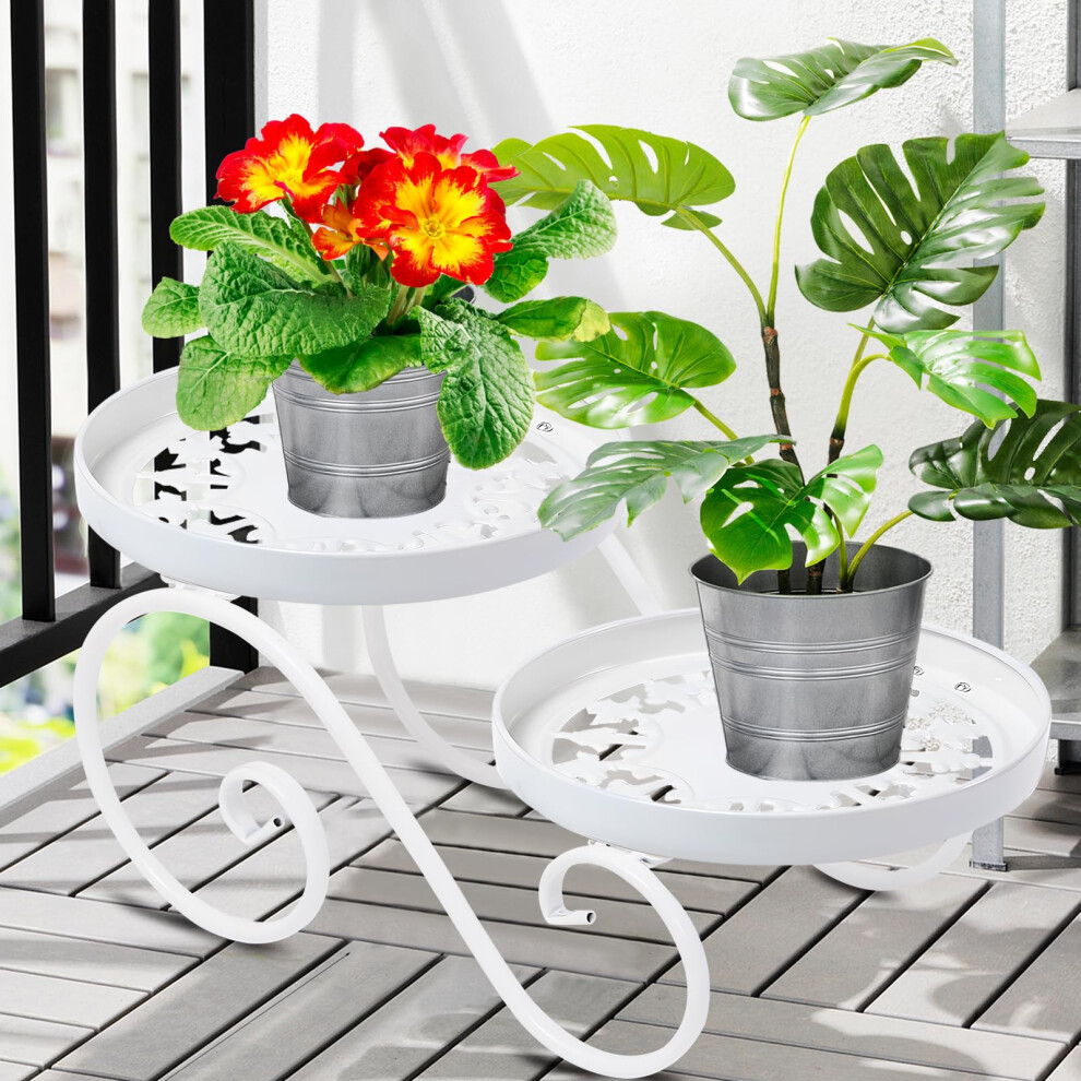 Santentre 2 Tier White Plant Stand Metal Flower Stand Indoor Outdoor AntiRust Iron Plant Shelf Round Flower Pot Stands for M