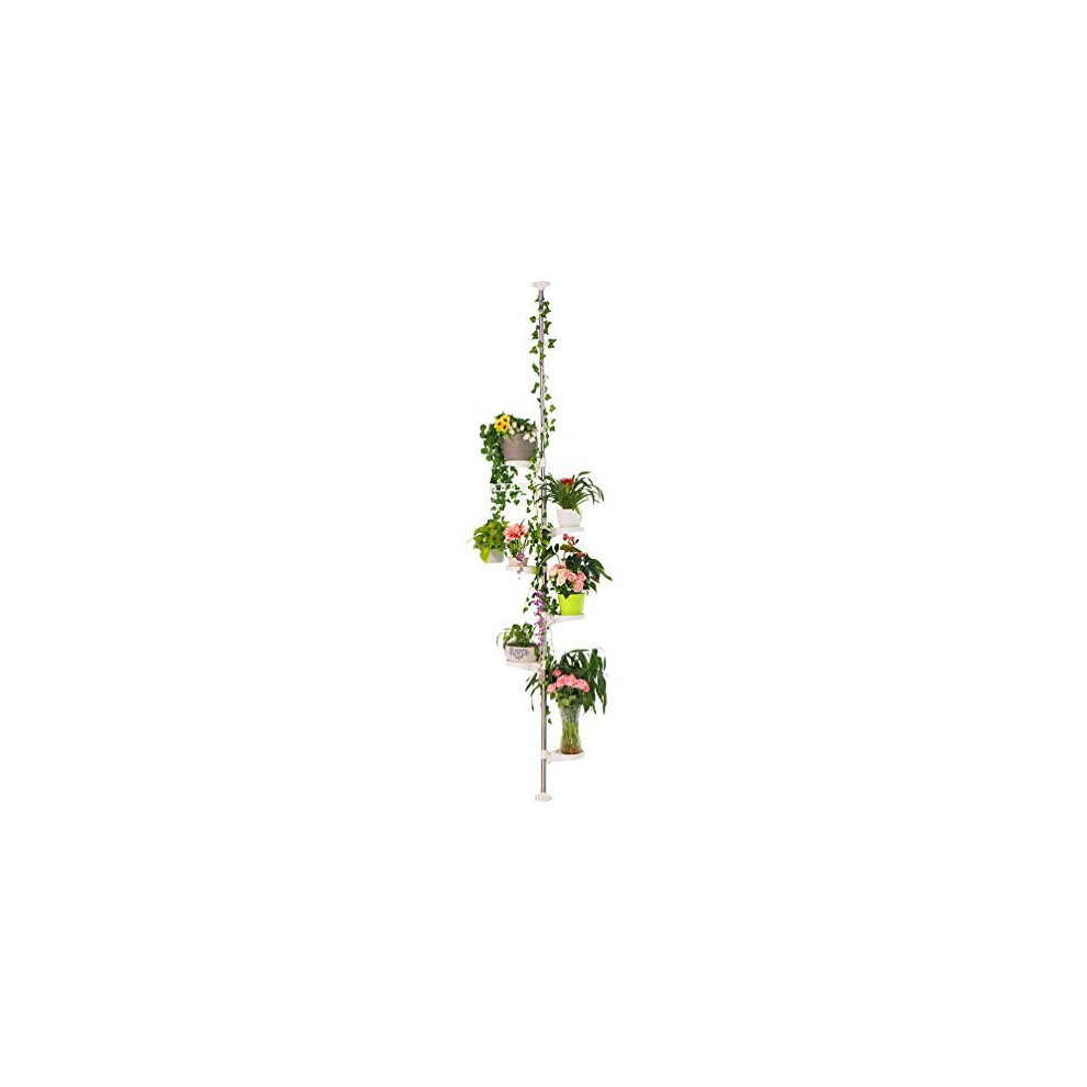BAOYOUNI 7-Layer Indoor Plant Stands Spring Tension Pole Metal Flower Display Rack Space Saver Corner Floral Pot Hanger Shelf, Ivory