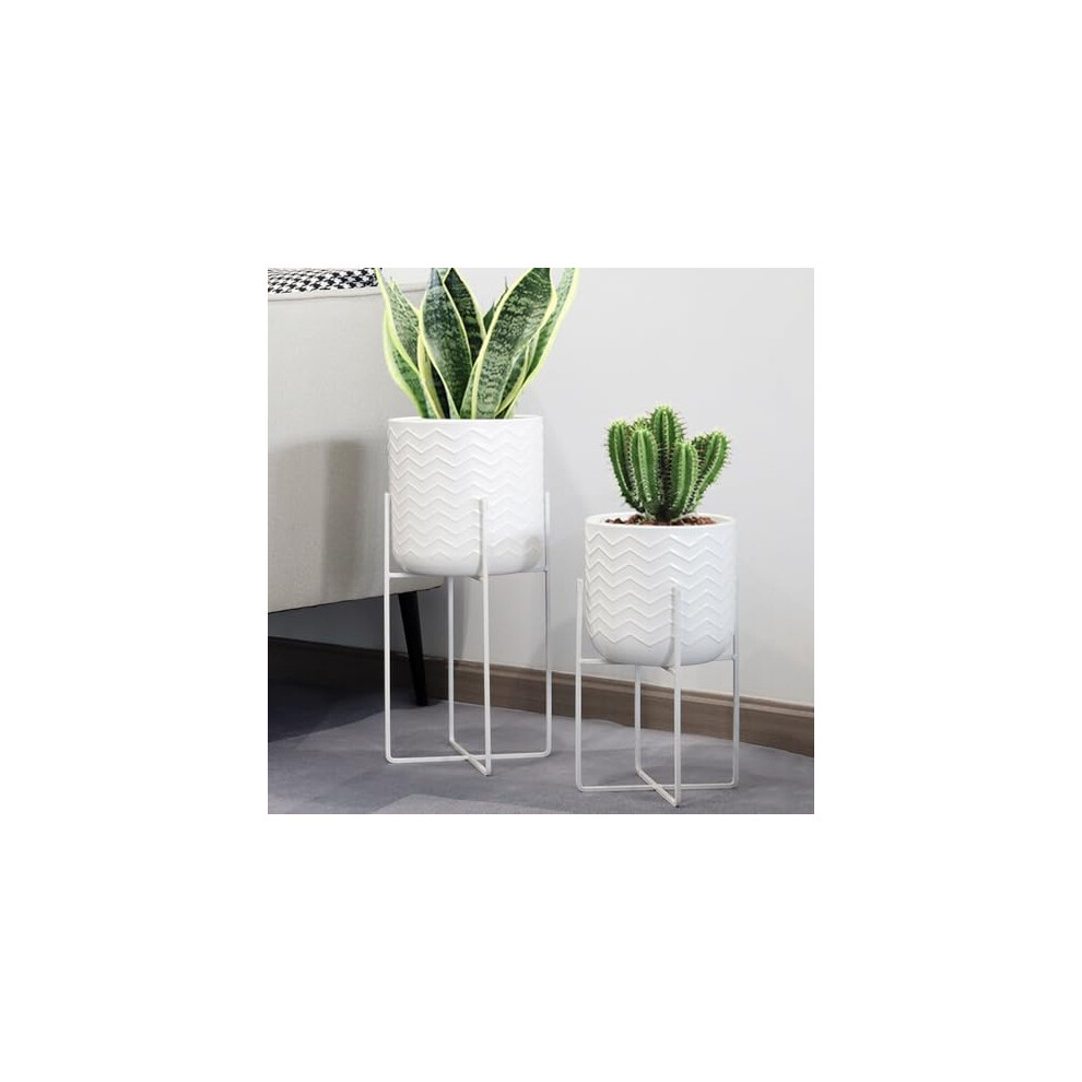 Set of 2 Planter Pots with Metal Stands, Flower Pots Living Room Decor | Reversible Stand Plant Pot for Indoor/Outdoor
