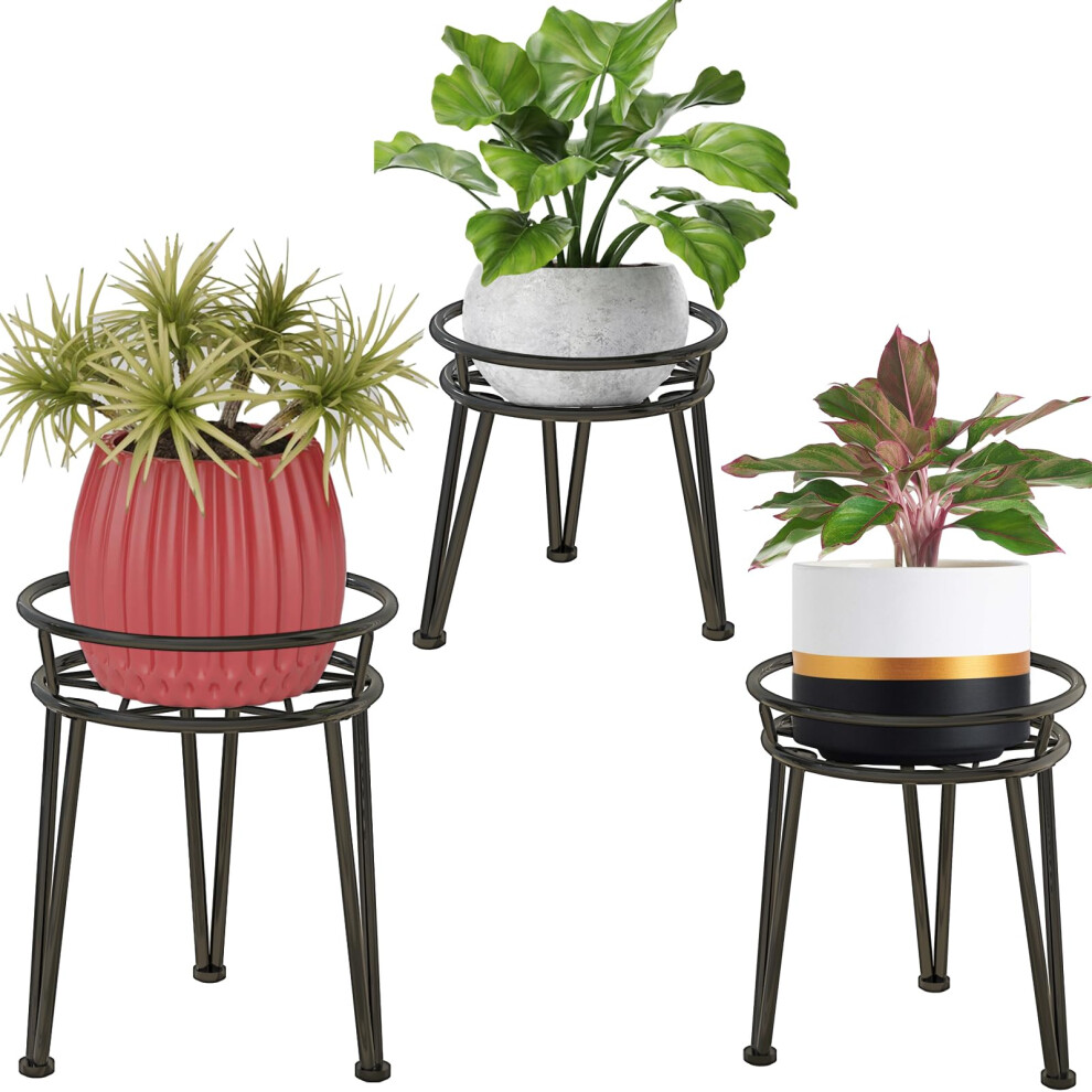 Lewondr Metal Potted Plant Stands, 3 Pack 9" Heavy Duty Rustproof Iron Round Flower Pot Stands, Indoor Outdoor Plant Holder Support Rack for Plan